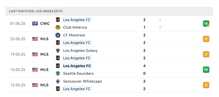 - Phong độ gần đây Los Angeles FC