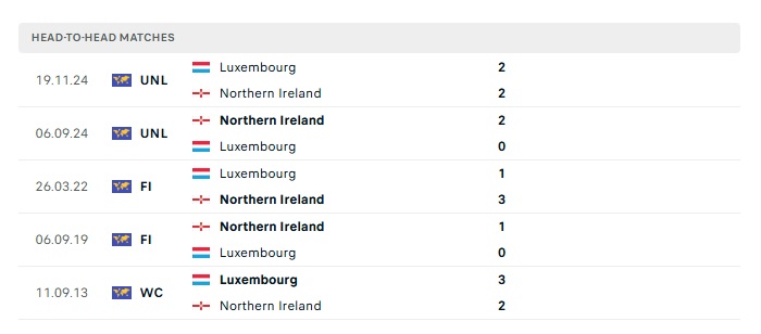 Lịch sử đối đầu Luxembourg vs Bắc Ireland