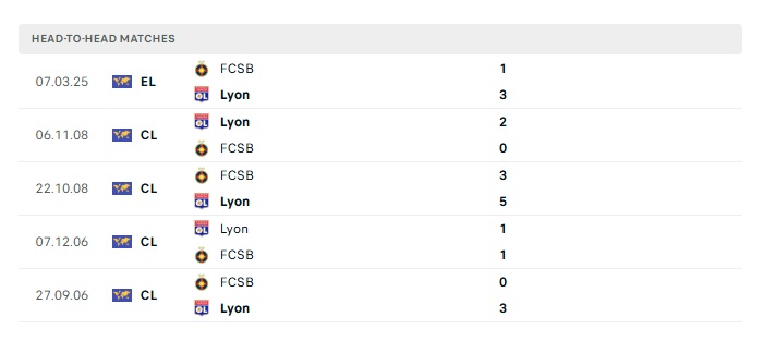 Cần phải biết rằng, phong độ của Lyon trong thời gian qua đang rất tốt và họ tự tin đè bẹp đối thủ. Hiện tại, Lyon đang có cho mình 4 chiến thắng và chỉ thua đúng 1 trận trong 5 lần ra sân gần nhất. Trong khi đó thì FCSB lúc này cũng đang có 4 chiến thắng, 1 hòa và thua 1 trong 6 trận gần nhất. Thế nhưng đứng trước đối thủ hoàn toàn áp đảo mình về mọi mặt, FCSB không có cơ hội nào để có điểm trước đối thủ.