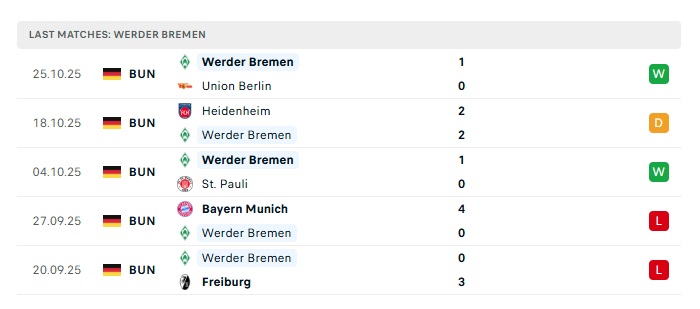 - Phong độ gần đây Werder Bremen
