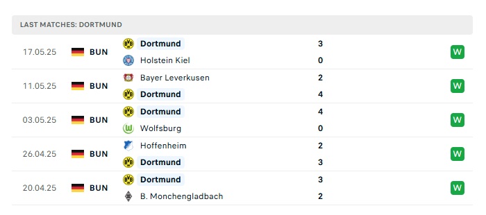 - Phong độ gần đây Dortmund
