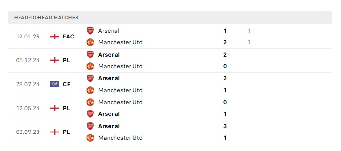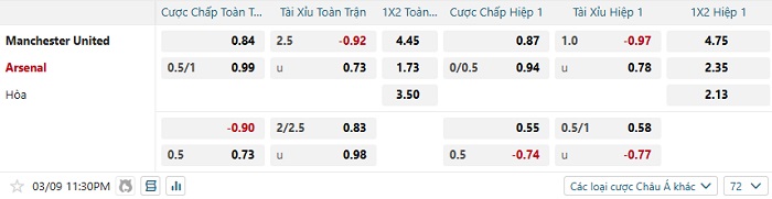 Bảng tỷ lệ kèo bóng đá Man Utd vs Arsenal