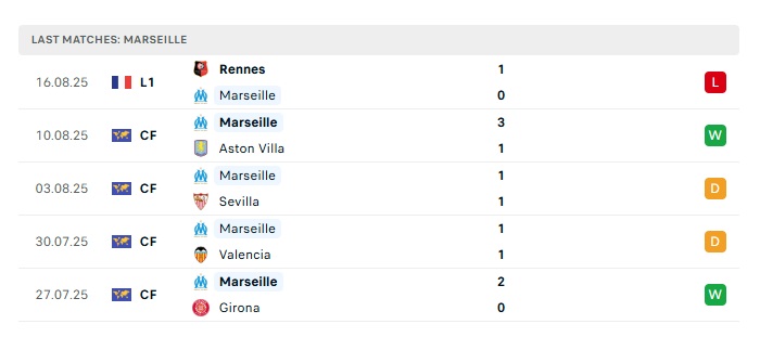 - Phong độ gần đây Marseille