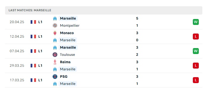 • Phong độ gần đây Marseille