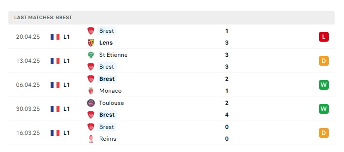 • Phong độ gần đây Stade Brestois