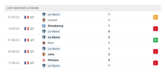 - Phong độ gần đây Le Havre