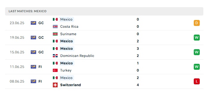 • Phong độ gần đây Mexico