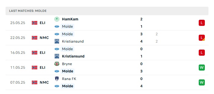 - Phong độ gần đây Molde