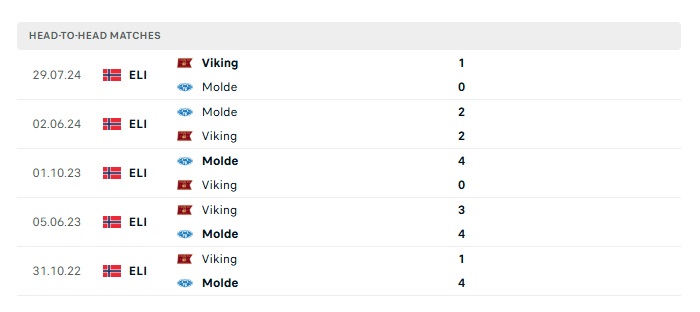 Lịch sử đối đầu Molde vs Viking
