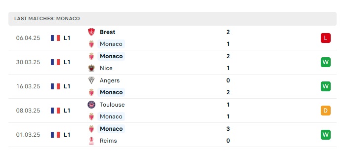 - Phong độ gần đây Monaco