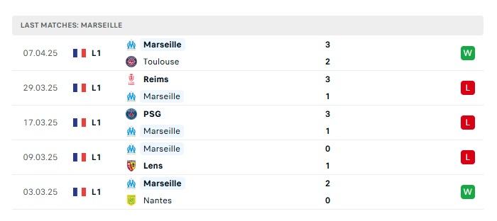 - Phong độ gần đây Marseille