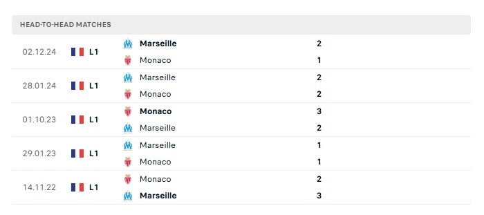 Lịch sử đối đầu Monaco vs Marseille