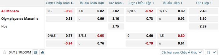 Soi kèo châu Á, kèo Monaco vs Marseille