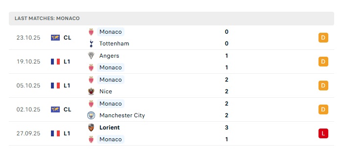 • Phong độ gần đây Monaco
