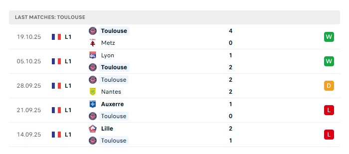 • Phong độ gần đây Toulouse