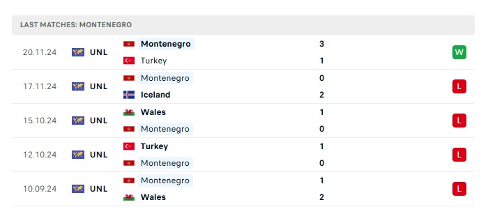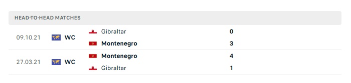 Lịch sử đối đầu Montenegro vs Gibraltar