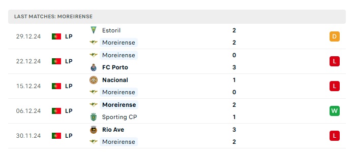 - Phong độ gần đây Moreirense