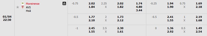 Soi kèo châu Á, kèo Moreirense vs AVS