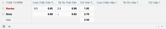 - Kèo tỷ số H2 Nantes vs Metz: 2-1