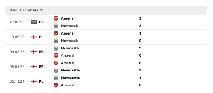 • Kèo tỷ số H1 Newcastle vs Arsenal: 0-0