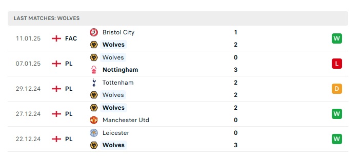 - Phong độ gần đây Wolves