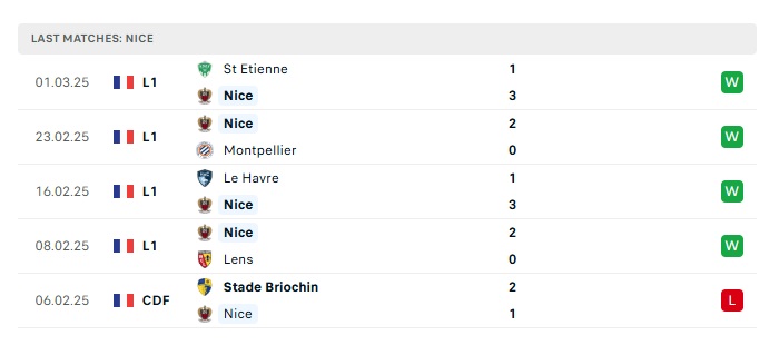 - Phong độ gần đây Nice
