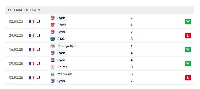 - Phong độ gần đây Lyon