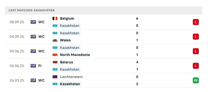 Phong độ gần đây North Macedonia vs Kazakhstan