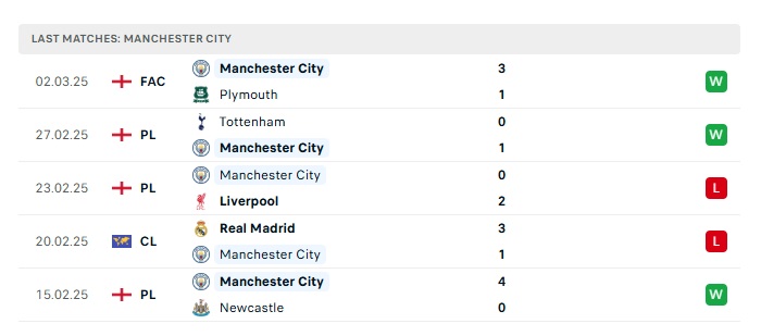- Phong độ gần đây Man City
