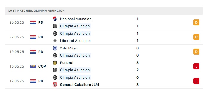 - Phong độ gần đây Olimpia