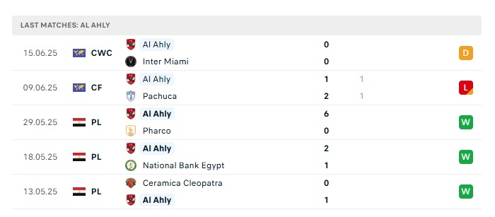• Phong độ gần đây Ahly Cairo