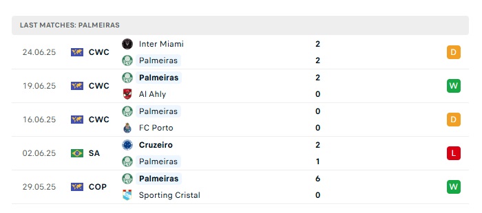 - Phong độ gần đây Palmeiras