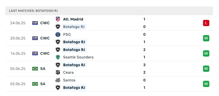 - Phong độ gần đây Botafogo