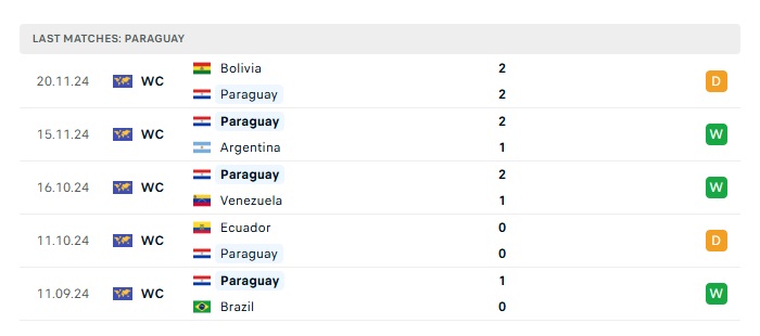 - Phong độ gần đây Paraguay