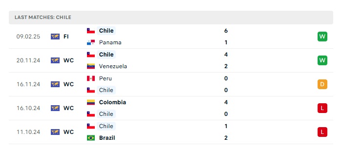 - Phong độ gần đây Chile