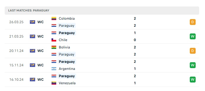 - Phong độ gần đây Paraguay