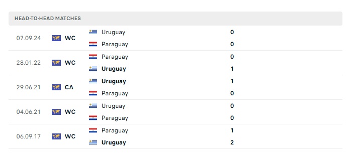 Phong độ gần đây Paraguay vs Uruguay