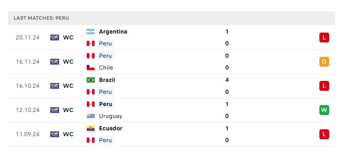 • Phong độ gần đây Peru