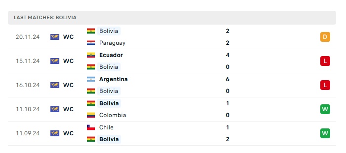 • Phong độ gần đây  Bolivia