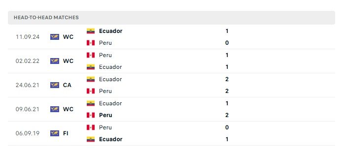 Phong độ gần đây Peru vs Ecuador