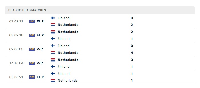 Lịch sử đối đầu Phần Lan vs Hà Lan
