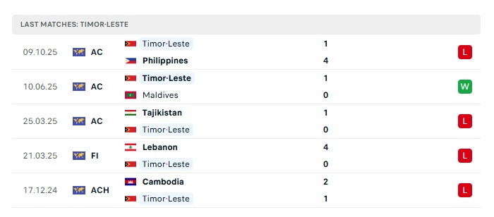 Nên biết rằng, phong độ thi đấu của hai đội trong thời gian qua đang có kết quả trái ngược nhau hoàn toàn. Trong 7 trận đấu gần nhất của Đông Timo, họ đã thắng 1 và còn lại là cả 6 trận toàn thua. Trong khi đó thì Philippines, họ đã thắng 3, hòa 1 và chỉ thua 1 trong 5 trận gần nhất của mình. Do đó, đội chủ nhà ngày hôm nay sẽ cực kỳ tự tin để có được 3 điểm hoàn toàn trọn vẹn.