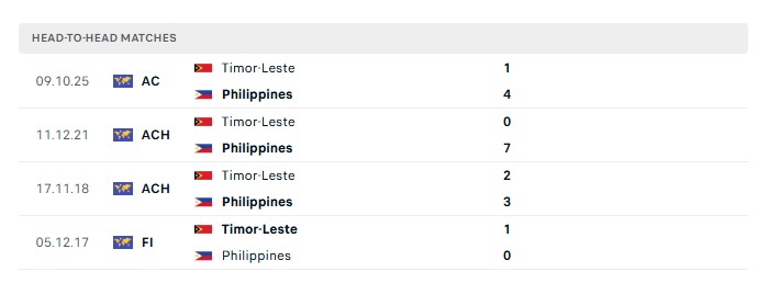 Lịch sử đối đầu Philippines vs Đông Timo