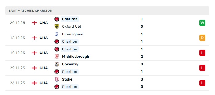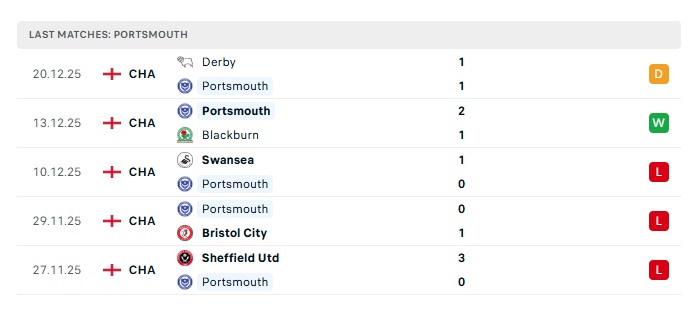 Phong độ gần đây Portsmouth vs Charlton Athletic