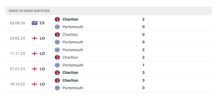 Lịch sử đối đầu Portsmouth vs Charlton Athletic