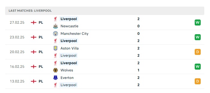 • Phong độ gần đây  Liverpool