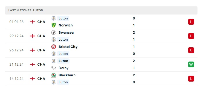 - Phong độ gần đây Luton