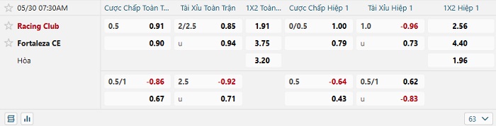 Soi kèo châu Á, kèo Racing Club vs Fortaleza