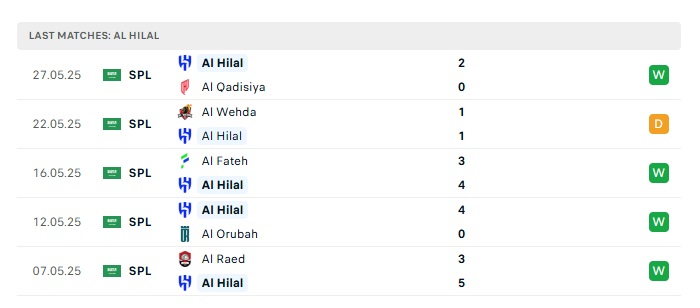 - Phong độ gần đây Al Hilal