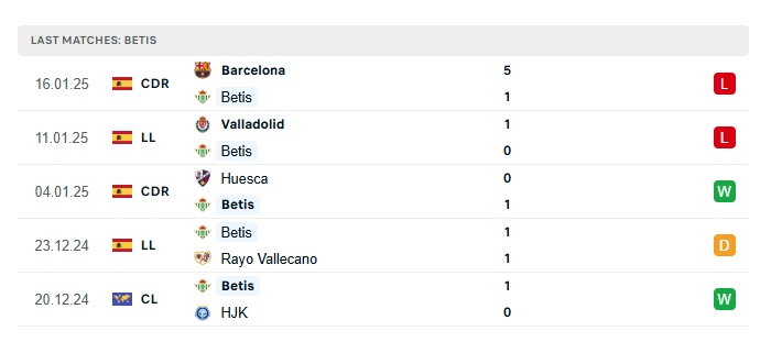 • Phong độ gần đây Real Betis